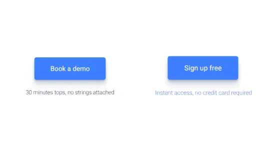 - Drugorzędne CTA są dla tych odwiedzających, którzy nie są pewni, czy chcą podjąć główną akcję. Zamiast subskrybować produkt SaaS, mogą woleć na początek wypróbować darmowy okres próbny. Są to ważne CTA, ale być może nie tak ważne jak te pierwszorzędne, co powinno być odzwierciedlone w ich projekcie pod kątem hierarchii wizualnej.